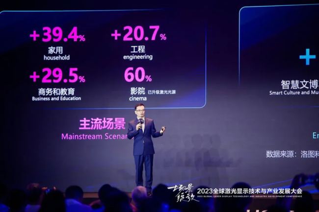 中国正走在全球激光显示产业发展的前沿 。根据洛图科技(RUNTO)数据显示,2023年,全球激光显示市场规模有望达到184万台;中国已是全球最大的市场,出货量占比达到49%。